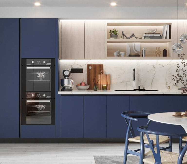 Sleek cabinets paired with traditional Indian utility.